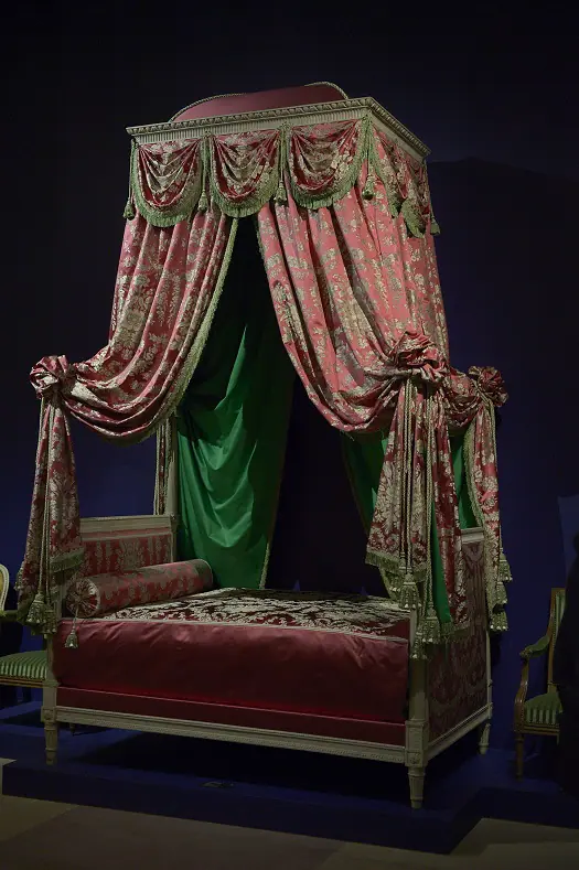 Enfin, c’est au tour du tapissier d’entrer en piste. Il rembourre le siège – de lui dépend en grande partie son confort – et le tapisse. Les garnitures s’abîment à l’usage, se fanent à la lumière ; très peu sont d’origine. Elles sont tissées à partir de modèles peints – scènes animalières, militaires ou galantes – souvent signés par de grands noms de la peinture. Il arrive que le travail du tapissier éclipse celui du menuisier ; pour preuve : un somptueux lit à la polonaise (c’est-à-dire agrémenté d’un dais arrondi plus petit que la couche) de style Louis XVI.