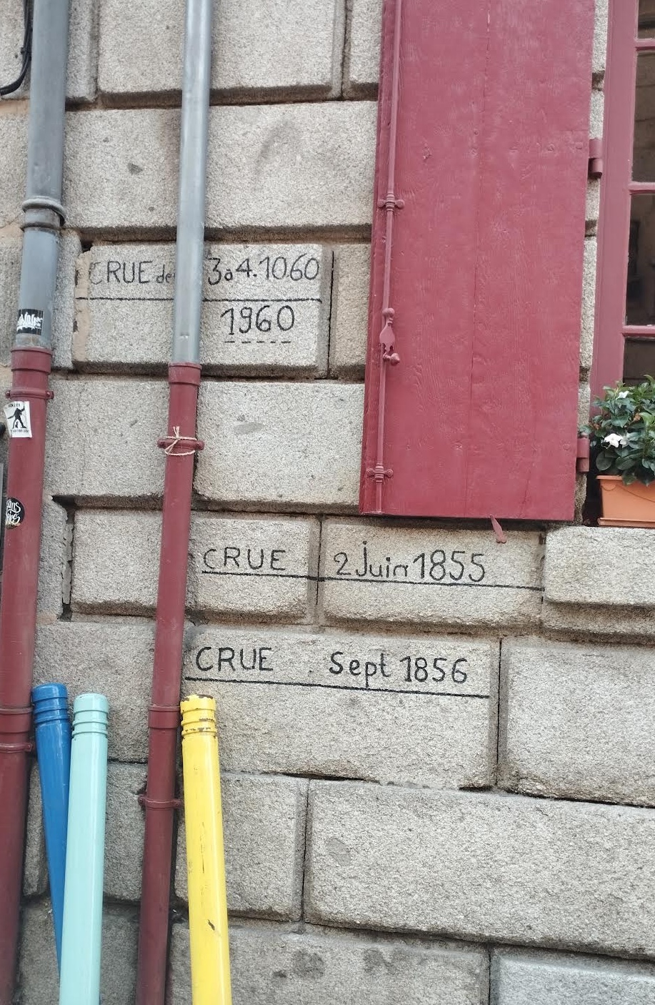 Marques des crues de la Creuse, rue des Déportés à Aubusson
