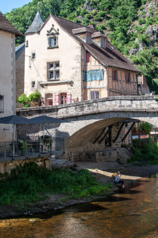 Pont de la Terrade enjambant la rivière Creuse, maison à colombages (actuel musée du carton de tapisserie) © Creuse Tourisme