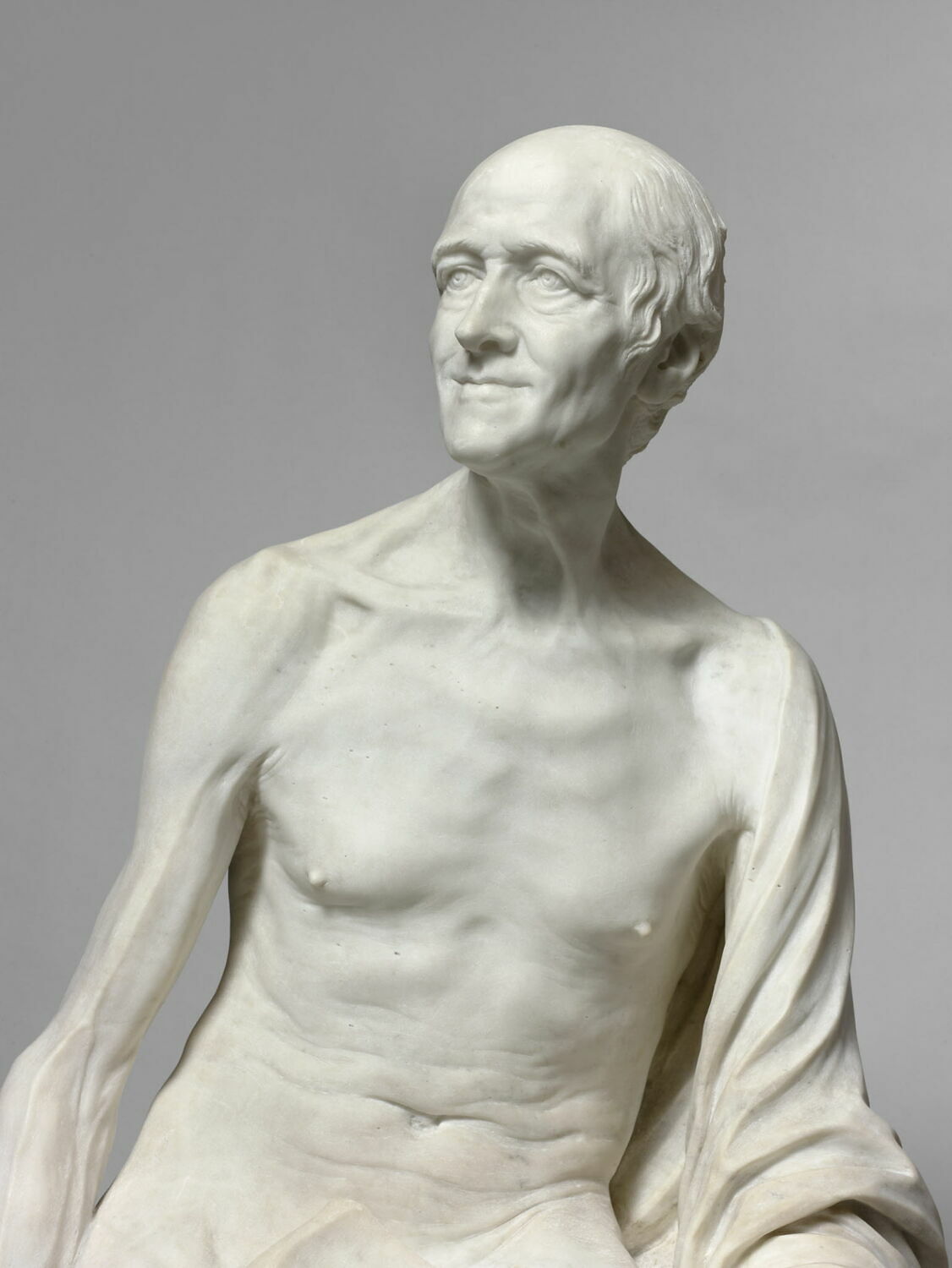 Jean-Baptiste Pigalle, « Voltaire nu » (détail), marbre, 1776 ; Paris, musée du Louvre © GP-RMN/ Hervé Lewandowski