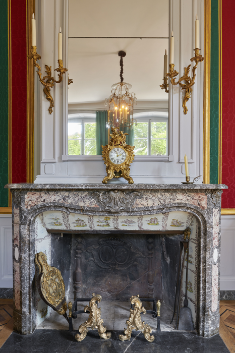 Cheminée du salon d’assemblée, salon situé dans l’aile du château dévolue à Mme Denis © Benjamin Gavaudo/ CMN