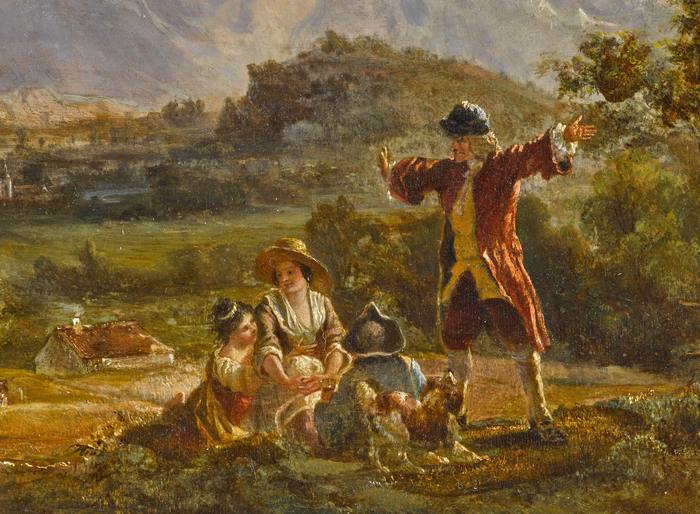 Jean Huber, « Voltaire et un groupe de paysans » (détail), huile sur bois, 1768 © Thomas Thibaut/ CMN