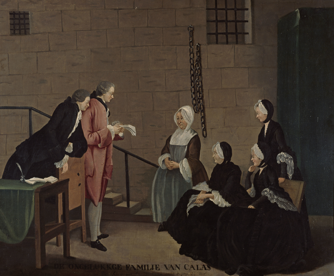 Pour que leur affaire soit rejugée, la famille Calas a dû se constituer prisonnière à Paris. Le peintre Carmontelle, acquis à leur cause, fait leur portrait. Diderot et Grimm promeuvent la vente de cette gravure, dont le fruit est reversé aux Calas.