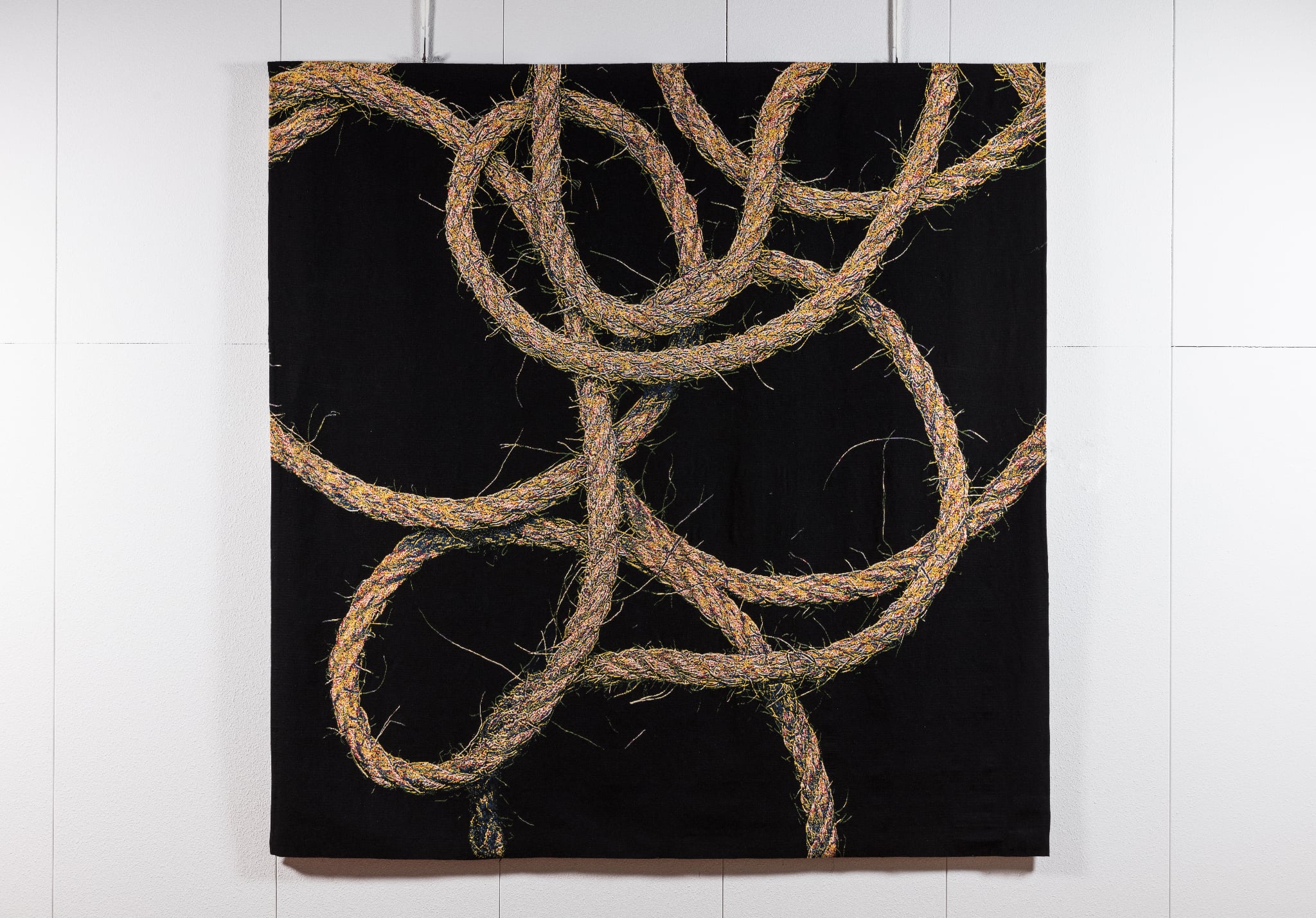 Autre parfait rendu de l’illusion, mais cette fois sans reflet de lumière. De près, il est évident que « Sans Titre » est un tissage ; de loin, et a fortiori sur une photo, impossible à voir !