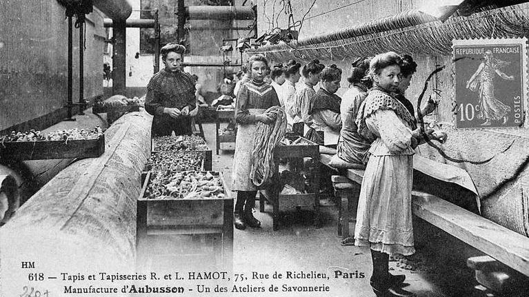 Au 19e siècle, l’activité s’industrialise. De grandes manufactures voient le jour – Sallandrouze, Croc-Jorrand, Bracquenié, etc. – employant des centaines d’ouvriers. Pour la première fois, toutes les activités nécessaires à la réalisation d’une tapisserie d’Aubusson – teinture des fils, peinture de modèles, tissage – sont réunies au même endroit.