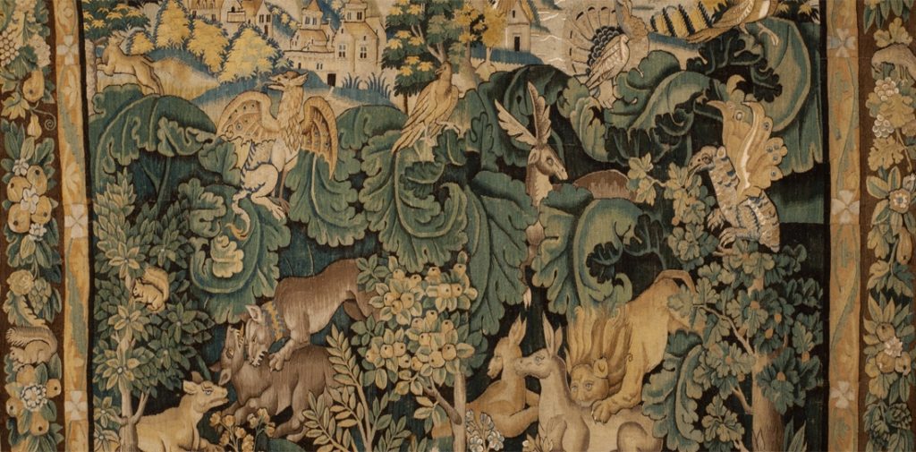 Les millefleurs passent de mode au début du 16e siècle, supplantées par les verdures dont le sujet quasi exclusif est la nature, une nature foisonnante jusqu’à en devenir inquiétante, peuplée d’animaux réels et fantastiques. Dans le lointain, la présence d’un paysage plus ouvert, d’une ville, d’un château ou d’une église rappelle la place modeste de l’homme dans la création.