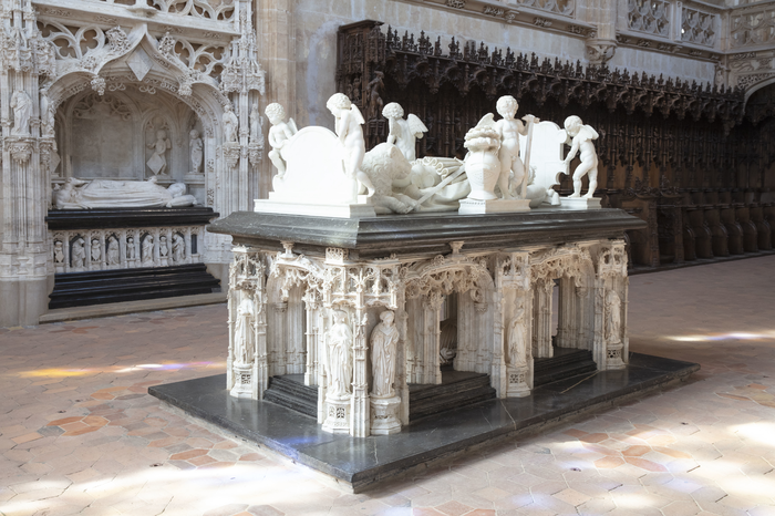 Tombeau de Philibert de Savoie au premier plan, tombeau de sa mère (Marguerite de Bourbon) à l’arrière-plan, chœur de l’église Saint-Nicolas-du-Tolentin, monastère de Brou, Bourg-en-Bresse © Franck Paubel/CMN